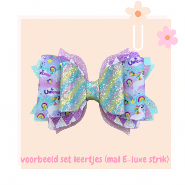 Verder bevat het Luxe pakket: alligator clip, een stuk ribbellint, strikmal (naar keuze), 1 uitwisbare pen, 1 mal om een haarclip te maken en 2 klikklak speldjes. Deze producten mag je uiteraard mee naar huis nemen! (Pakket heeft een waarde van €15,00)